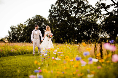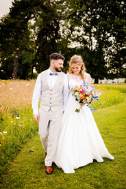 It was a glorious July day and the sun shining meant that the couple could say their vows outside overlooking the meadow, surrounded by all their friends, family and the most important member of the bridal party - their pet dog Skye.